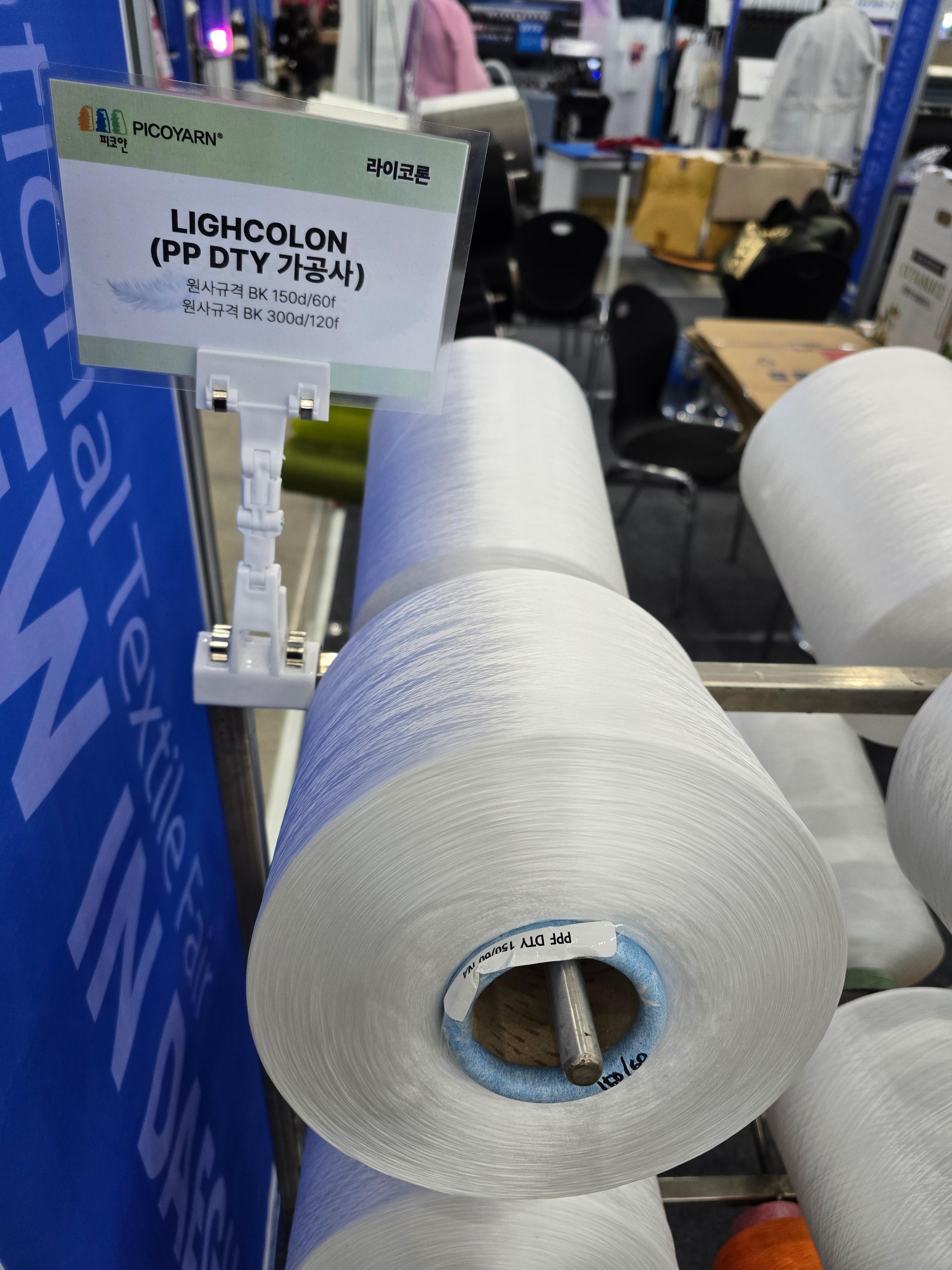 초경량 PP DTY 가공사로 DTY 150D/60F, 150D/120F 아이템을 선보인 가운데, 기능성 의류, 침장, 각종 생활용품 소재 시장을 겨냥하고 있다.