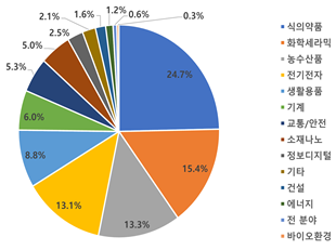 【 표5 연간 무역기술장벽 산업별 통보 추이 (단위: %) 】