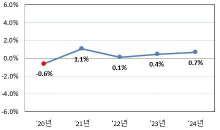 | 증가율 | 1.5 | 0.8 | 0.1 | 4.8 | 4.1 | △1.5 | 2.8 | 1.1 | △0.7 | 1.3 | 1.5 | 1.1 | 2.0 |