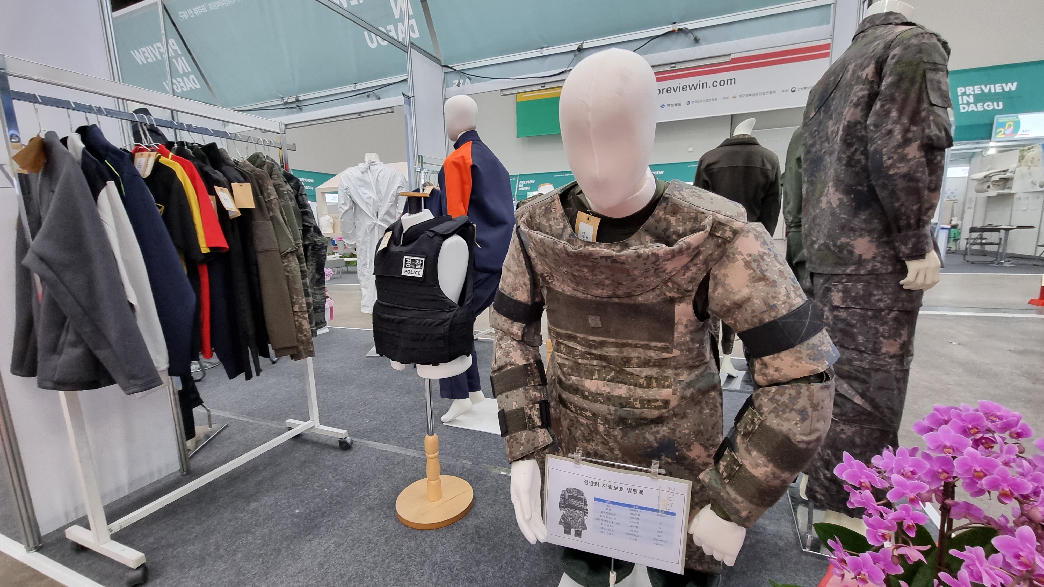 이번 전시에서는 녹색인증을 획득한 공군 디지털 런닝, 육군 드로즈팬티를 비롯 국방분야 연구개발사업으로 수행 중인 ‘경량화 지뢰보호 방탄복’ 개발 시제품을 함께 선보였다.